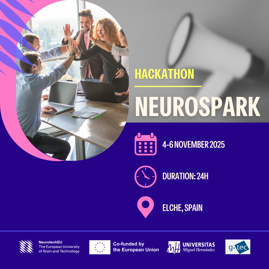 The European University of Brain and Technology celebrates its annual Hackathon. Neurospark, the 2025 hackathon, will take place from November 4 to 6 in Elche, hosted by the Universidad Miguel Hernández de Elche (UMH).