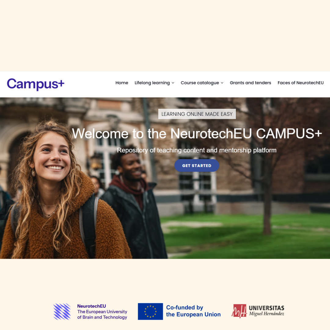 The NeurotechEU platform, Campus+ serves as a dynamic repository of teaching content, offering a collection of courses from all NeurotechEU partner institutions. With contributions from eight universities, the platform ensures that learners gain access to cutting-edge content across diverse fields of neurotechnology. It also acts as a mentorship hub, connecting students with experts in their disciplines, facilitating knowledge transfer, and nurturing innovation.
